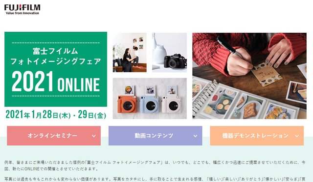 「富士フイルム フォトイメージングフェア2021 ONLINE」、1月28日・29日に開催