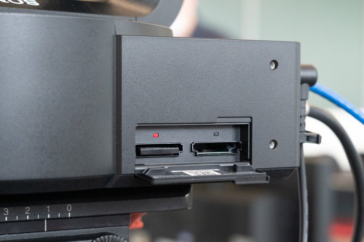 記録メディアはSD/CFexpress Type-Aで、共用スロットを2つ搭載する。インターフェースはLAN端子、SDI出力端子、TC IN端子、OPTICAL出力端子(別売モジュールによりSDI信号を光変換して出力)、GENLOCK端子、HDMI Type-A出力端子、AUDIO IN端子(XLR5ピン)、OPTION端子。電源は付属ACアダプターから供給する。またLAN端子はPOE+++に対応し、対応機器との接続時には電源、操作信号、映像信号を1本で伝送できる。