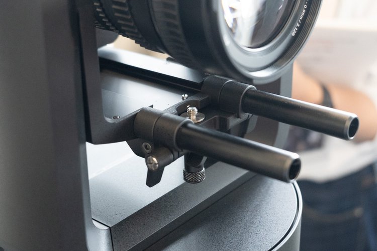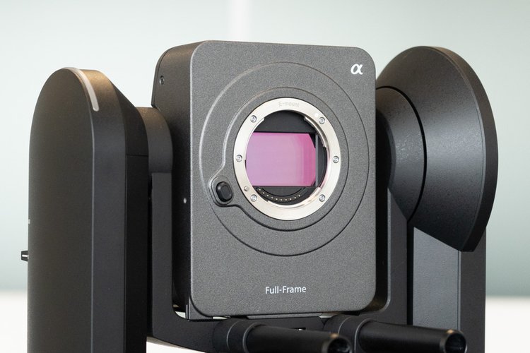 カメラ部分はEマウントのため、超広角12mmから超望遠1,200mまで、70本の同社レンズが使用可能。レンズによって大きさや重さが異なることから、ジンバルのように取り付け位置を前後させ、バランスを取ってセッティングする仕組みとなる。なお「SEL100400GM」や「SEL600F40GM」など、一部の大型レンズはモーター能力の関係から、取り付けは行えるがパンチルト操作は非対応としている。