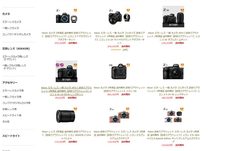 また、お得なアウトレットアイテムのラインナップに2021年発売のミラーレスカメラ「Z fc」のプレミアムエクステリア仕様が登場。カメラ単体、レンズキットといったアイテムをお得に買うことができる。
