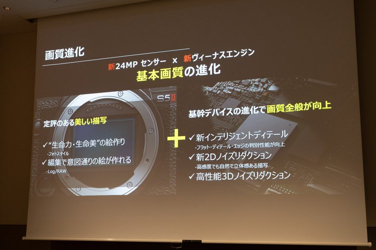 基本的な性能はS5II/S5IIXともに同様で、エンジンとセンサーを従来から刷新。エンジンには従来機「S5」比で演算性能約2倍、バッファメモリ約4倍の「新ヴィーナスエンジン」を搭載する。またセンサーは新開発のもので、解像度は24.2MP。前述の通り像面位相差AFに対応する。