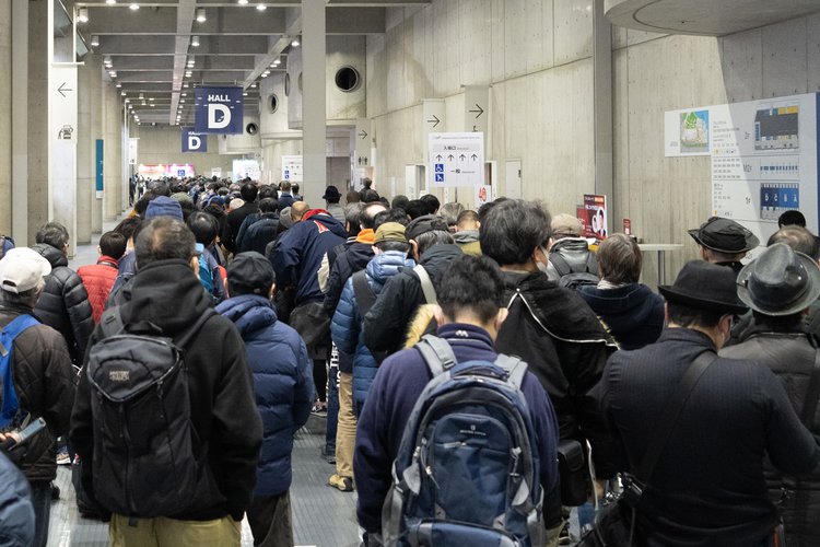 多くの方がリアル開催の復活を心待ちにしていたようで、一般入場が始まった12時の時点では、外まで入場列が続くほどの盛況ぶり。前回リアル開催した2019年の128社と比べると、今回の出展は50社を下回っていてブースの密度感は小さいが、久しぶりのリアル開催ということもって盛り上がりを見せていた。