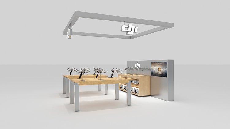「映像制作、創造性の空間」をコンセプトに掲げ、床はコンクリートタイル、天井は最小限のライトボックスのデザインで、製品をより際立たせる均質な空間を演出する。製品に触れることができるナチュラルウッドを基調としたハンズオンカウンターを構え、ユーザーとのタッチポイントを提供。DJI製品とその最新技術が体験できる。