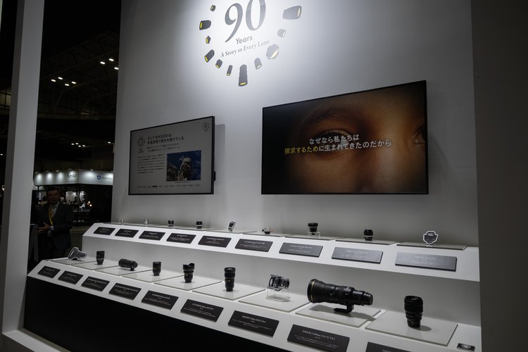 ニコンではNikon Creative Lifeをテーマにブースを展開。昨年同様、ミラーレスの「Zマウントシステム」を中心に展示が行われている。昨年90周年を迎えた「NIKKOR レンズ」の歴史として、過去の名レンズも並べられていた。
