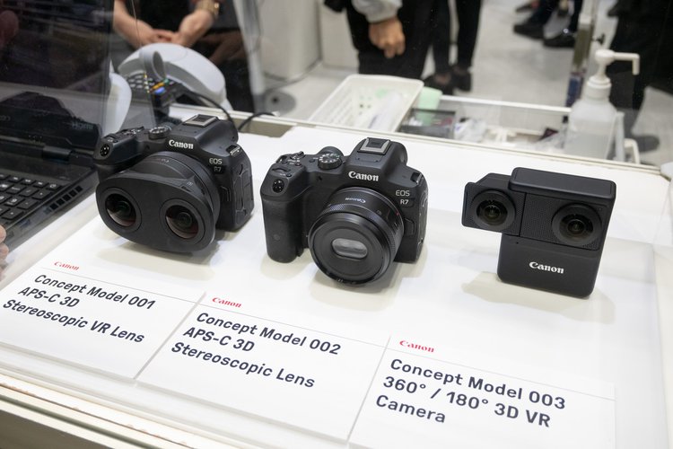キヤノンは参考出展として3つのVR/3D向けの製品を展示した。会場に展示されていたのは動かないモックとのことだが、発売に向けて動いている途中とのことだ。