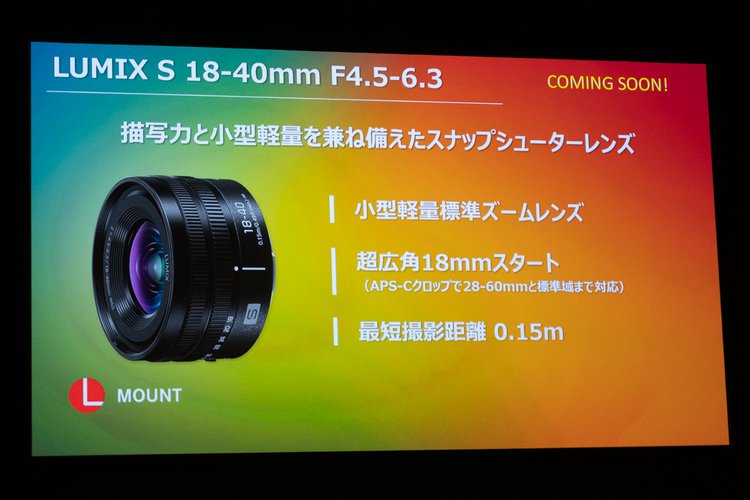 本レンズに加えて、同じくフルサイズ対応のズームレンズ「LUMIX S 18-40m F4.5-6.3」の開発を発表。こちらもLUMIX S9との相性を想定した小型軽量のデザインを採用。最短撮影距離は0.15mで、描写力も兼ね備えているとしている。発売は年内を予定しているとのこと。