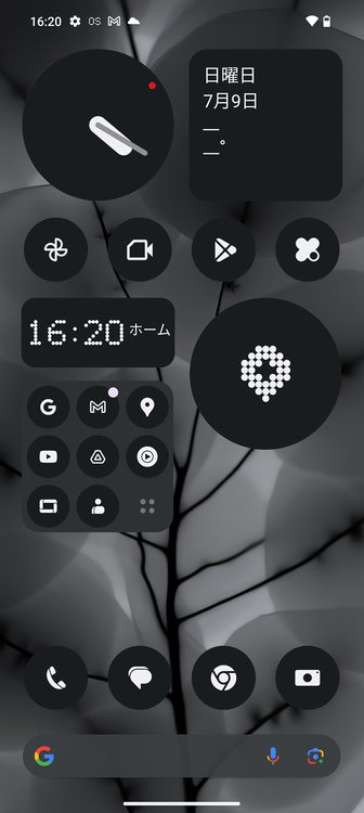 だが、Nothing OSが2.0に進化したことで、新たにNothing Phoneらしいデザインを取り入れたウィジェットが多数用意。よりNothing Phoneらしいホーム画面を演出できるようになったほか、アイコンのほとんどをモノクロにしてしまう仕組みも用意され、ホーム画面全体でNothing Phoneらしい落ち着いたトーンのデザインに統一できる。もっとも、全てのアプリのアイコンがモノクロになるわけではなく、ゲームアプリのアイコンなどはモノクロ化されないようだ。
