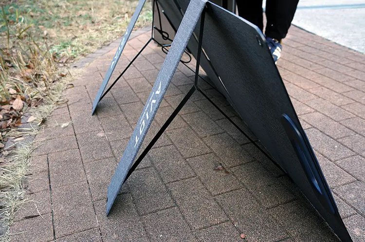 重量は4.3kgで、約60cm四方サイズに折り畳むことが可能。取っ手も付属しており、比較的手軽に持ち運びできる。さらに背面には、自立可能なスタンドが付属しているため、設置も非常に簡単に行えた。このように、高効率で持ち運びしやすいのはありがたいかぎり。屋外のキャンプやグランピング、さらに災害時まで重宝する。