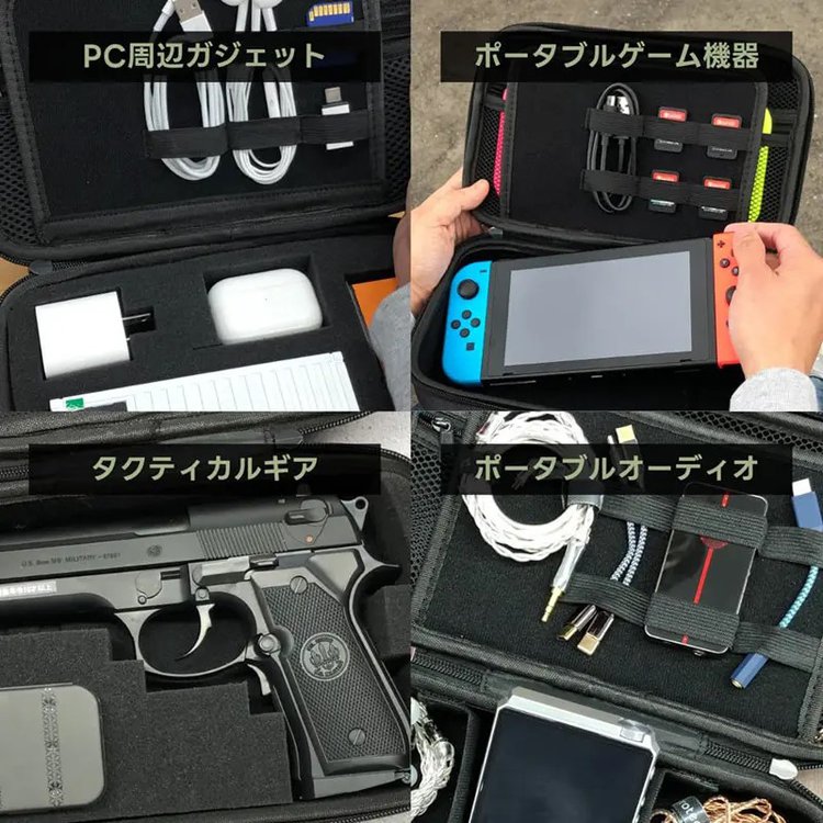 ケース本体は、高い強度を備えるEVA素材を採用したセミハードタイプ。落下や外部からの衝撃に強く、収納物をしっかりと保護できるとする。また、片手で持ち歩けるコンパクトサイズに持ち手も備え、持ち運びも手軽だとしている。