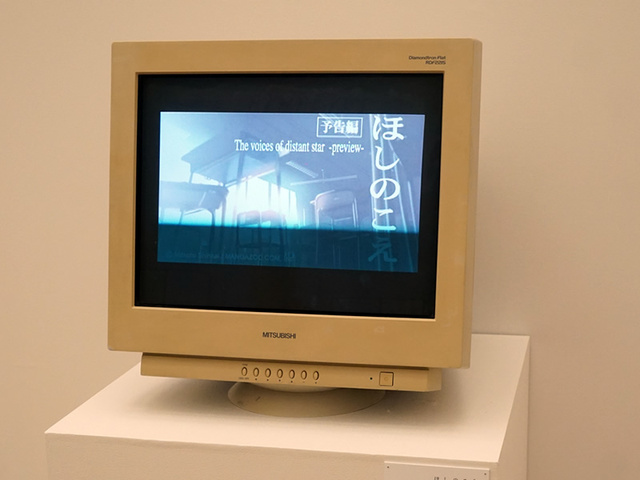 変わったところでは、新海誠監督の作業環境を再現した展示も。「ほしのこえ」制作当時(2001年〜2002年)は「Power Mac G4(400MHz/メモリ1GB)」や手描き画のトレース台などだったところから、「君の名は。」制作時には「Mac Pro(2.93GHz/ Intel Xeon)」や液晶タブレットになるなど、時代の変化も感じられる。ちなみに監督が最初に使ったPCは、小学生のときに親から買ってもらったシャープ「MZ-2000(8bit/4MHz)」で、プログラム描画で絵本「すてきな三にんぐみ」を再現してデジタル紙芝居を作っていたという。