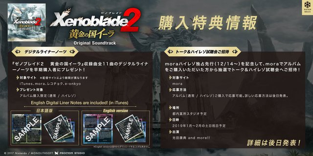 「ゼノブレイド2 黄金の国イーラ」サントラがハイレゾ配信。購入者特典で光田康典など出演のトーク&試聴会も