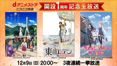 ニコニコ、「あの花」「東のエデン」「冴えカノ」を3日連続で一挙無料放送