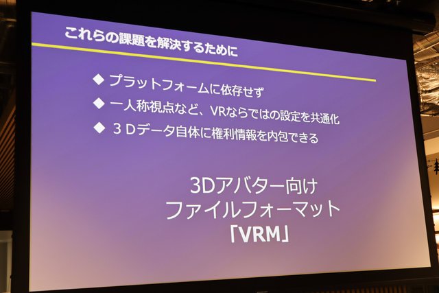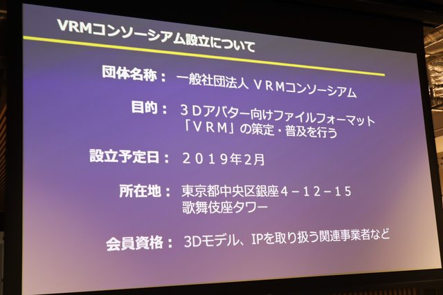 同団体では、3Dアバター向けファイルフォーマット「VRM」の策定・普及を行う。日本発のフォーマットを世界標準にすることを目的に活動するという。
