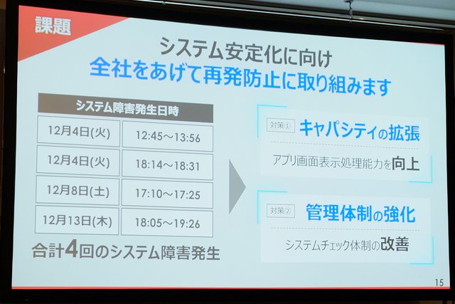 一方、前回のキャンペーン期間中に4回のシステム障害が発生したことについて、謝罪を行うとともに、キャパシティの拡張や管理体制の強化を実施したと報告された。