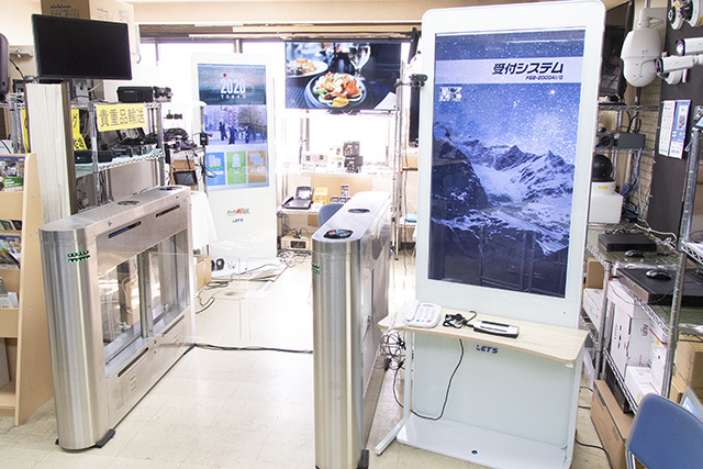 企業訪問の受付や担当者への取り次ぎを行う無人受付システムとして、AI顔認証により手続きや訪問履歴管理の高速化、4Kサイネージにより視認性の向上を図ったという製品。さらにセキュリティーゲートの機能も連動させた、 “3つの要素を融合させた世界初のインテリジェント無人受付システム” と同社は説明している。