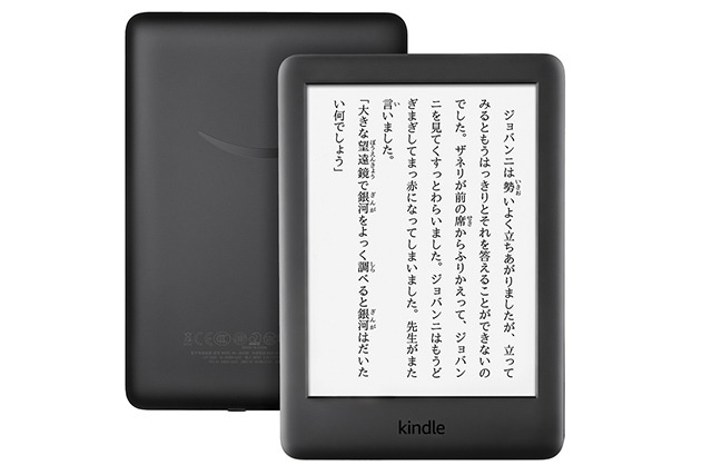 「Kindleシリーズ」のエントリーモデルとしては初めて、フロントライトを内蔵して明るさ調節に対応した。上位モデルの「Kindle Paperwhite」「Kindle Oasis」同様、昼夜問わずどのような環境においても読書が楽しめるとする。搭載するE-Inkディスプレイは解像度167ppiの6インチサイズで、従来モデルと同様。