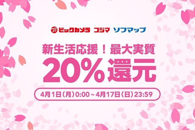 LINE Payは、本日4月1日(月)から17日(水)までの期間、ビックカメラ/コジマ/ソフマップの対象店舗(オンラインショップ除く)において、モバイル送金・決済サービス「LINE Pay」の「コード支払い」で決済すると最大20%還元となるキャンペーンを実施している。