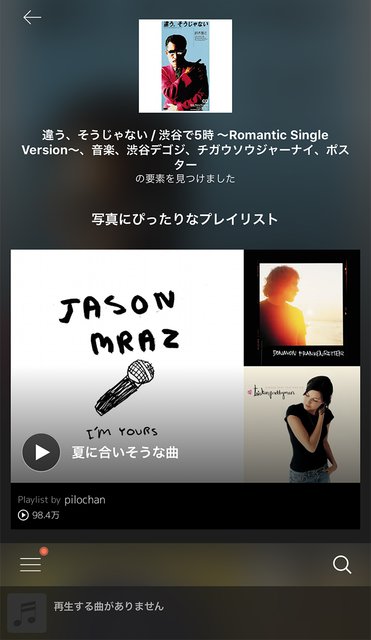 ASIAN KUNG-FU GENERATION『ソルファ』で試してみると、ちゃんと「アジアンカンフージェネレーション」プレイリストも含まれてた。「back numberのCLASSICS」なんかもある。いい感じだ。ちなみにビートルズ『アビイ・ロード』のジャケットで試すと、しっかりビートルズ関連のプレイリストを教えてくれる。