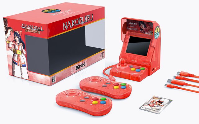付属品として、USB Type-Cケーブル(2m、充電用)、PAD(コントローラー)2個、HDMIケーブル(2m)、キャラクターステッカー、キャラクターカード、滑り止めパッドが同梱。その他、同社直販サイトでは、PS4版『SAMURAI SPIRITS』との限定セットも販売される。