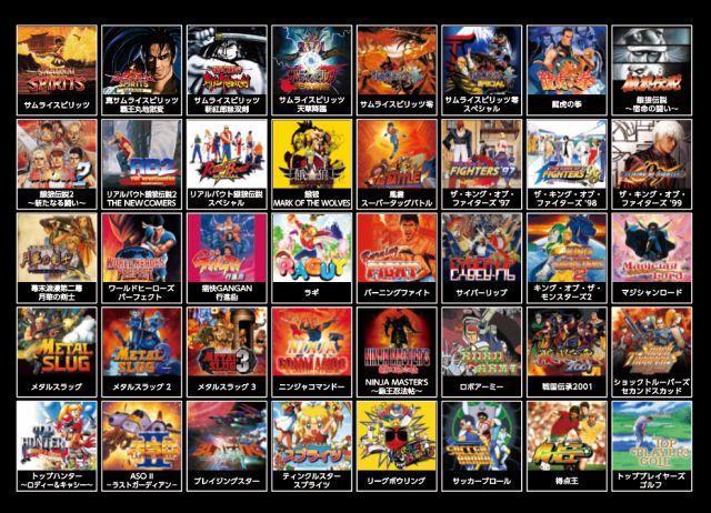 収録タイトルは全40作で、NEOGEO miniシリーズとして初めて『サムライスピリッツ(1993)』『サムライスピリッツ 斬紅郎無双剣』『サムライスピリッツ零』の3タイトルを収録。『サムライスピリッツ 覇王丸地獄変』『サムライスピリッツ 天草降臨』『サムライスピリッツ零SPECIAL』をあわせた『サムライスピリッツ』シリーズ6作品を1台で遊ぶことができる。その他にも『ザ・キング・オブ・ファイターズ '97 』『メタルスラッグ』などのタイトルを収録する。