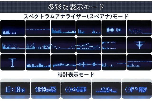80〜90年代のミニコンポに搭載されていた、グラフィックイコライザーのスペクトラムアナライザをモチーフとした製品。3.5mm端子または内蔵マイクから入力したオーディオ信号に合わせVFD上に波形グラフを表示し、音楽を視覚からも楽しめるとしている。なお、計測目的では使用できない。