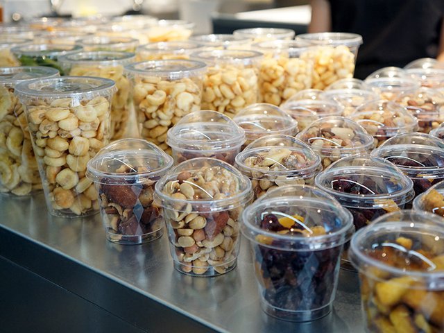 フードはスナックや軽食類が中心。ミックスナッツやポップコーンなど各380円のものと、ジャーキーや枝豆、ドライフルーツなど各480円のものを用意している。