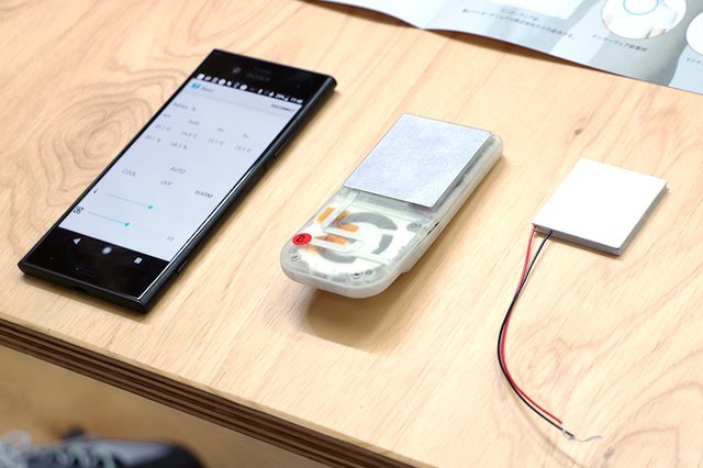 搭載するサーモデバイスは、同社の研究所にて開発されてきた技術を元にしたもので、電圧をかけることで片側が冷たく、もう片側が熱を持つというペルチェ素子を採用している。大きな電力をかけることで一気に冷やすことができるため、通常は車のシートクーラーや、ワインクーラーなどに使用されているという。