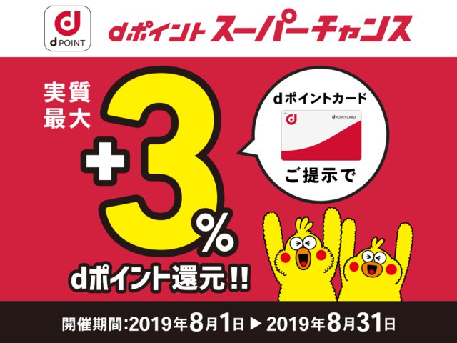 dポイントカード、最大3%ポイント還元の“スーパーチャンス”。8月1日から開催