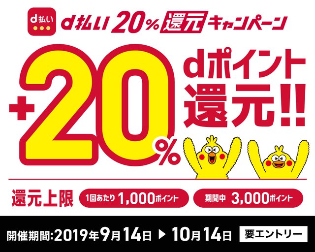 d払い、20%還元のポイントキャンペーン。9月14日から
