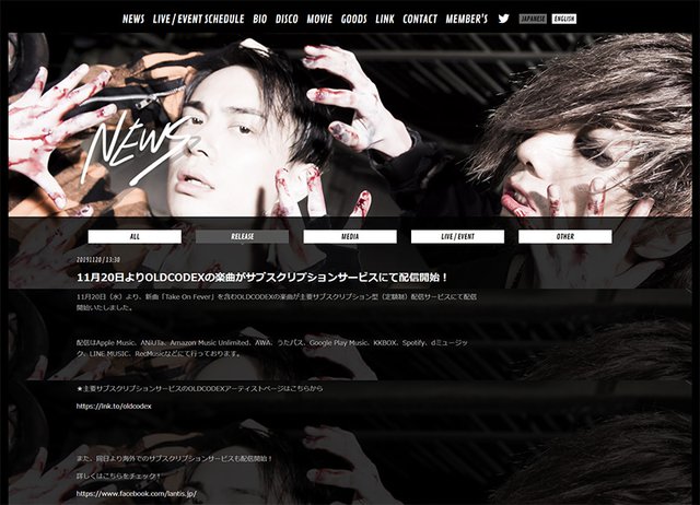 OLDCODEXの楽曲がサブスクリプション型音楽配信サービスにて解禁された。