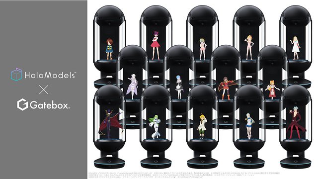 HoloModelsは、購入したデジタルフィギュアの固定プリセットポーズをGatebox上で切り替えて鑑賞できるアプリ。Gateboxとの連携により、Gatebox上に3DCGで作られた『コードギアス 反逆のルルーシュ』『七つの大罪 戒めの復活』『Re:ゼロから始める異世界生活』『この素晴らしい世界に祝福を!』『エロマンガ先生』『世話やきキツネの仙狐さん』『ゲゲゲの鬼太郎』『うたっておんぷっコ♪』などの各種タイトルの人気キャラクターが召喚可能となる。