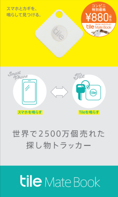 販売されるのは、忘れ物防止タグ「Tile Mate」と、設定方法や利用シーンを掲載した冊子がセットになった「Tile Mate Book」。「Tile Mate」は通常2,900円(税込)だが、「Tile Mate Book」は880円(税込)の特別価格となる。
