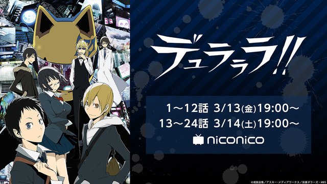 niconicoは、アニメ『デュラララ!!』全24話の一挙放送を3月13日、14日にわたってニコニコ生放送で実施する。