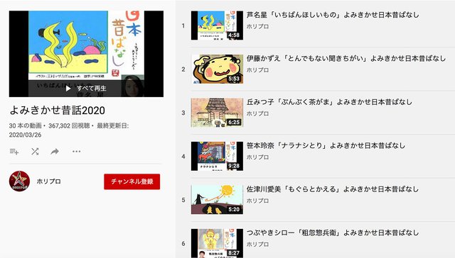 ホリプロ所属タレントによる「日本昔ばなし よみきかせシリーズ」が、ホリプロ公式YouTubeチャンネルにて無料公開されている。