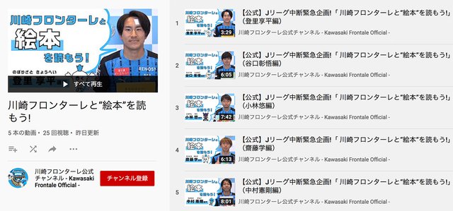 川崎フロンターレが4月1日よりスタートした「リーグ中断緊急企画」。川崎フロンターレでは2009年より川崎市教育委員会と協働して、フロンターレの選手やマスコットキャラクターを使用した、川崎市内での読書を通じた豊かなまちづくりのための読書推奨キャンペーン事業「川崎フロンターレと本を読もう!」を実施している。