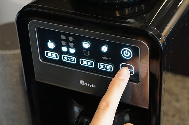 プロペラ式ミルや水タンク(最大容量750mL:カップ6杯分)を内蔵し、豆を挽く - ドリップまで自動で行える全自動コーヒーメーカー。内蔵ミルによる豆の挽き具合は、杯数に応じた中挽き6段階を選択可能。蒸らしやドリップ時間を変えることで、コーヒー濃度を「濃」「淡」の二段階で設定できる。豆以外にコーヒー粉も使用可能だ。なお豆を量る機能はないので、淹れる分の豆を別途計量して入れる必要がある。抽出にかかる時間の目安は、1杯で5 - 6分、6杯だと10分程度とのこと。