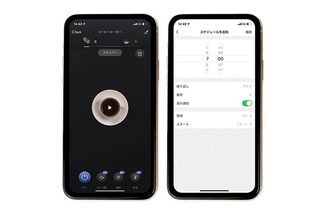 「タイマー」機能では、「●曜日の朝●時●分になったら」コーヒーを淹れ始めるといった設定が可能。