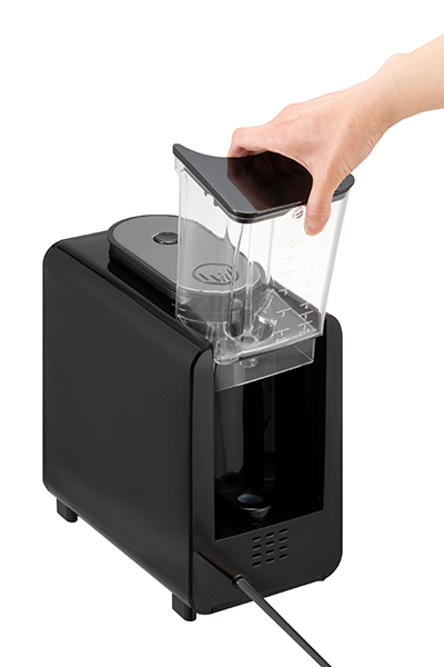 内蔵ミルや水タンクは取り外して丸洗い可能。消耗品にあたるミルおよびコーヒーサーバーは別売も行う。外形寸法は160W×280H×321Dmm、質量は約2.6kg。消費電力は約670W。