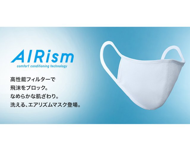 エアリズムは3サイズ(S、M、L)で、価格は3枚組990円(税抜)。細菌や花粉などの粒子を99%カットするフィルター、紫外線を90%カットするメッシュ素材、そして汗ばんでもなめらかな肌触りを維持するエアリズムを採用した。これにより「マスクとしての防御性能」「洗濯可能」「つけ心地」という3つの機能を実現したとしている。