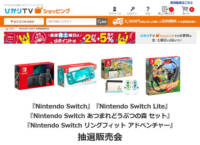ひかりTVショッピング、Nintendo Switchを抽選販売。6/29応募締切、あつ森セットやリングフィットも