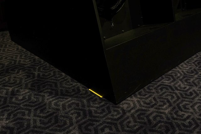 通常の1.5〜2倍というハイパワーのサブウーファーが4基(アイソバリック方式なので実際には8基)。その低音は凄まじいものがある。人気洋画作品を鑑賞したが、小型の拳銃の発砲音1つとっても明らかにパワフル。口径が大きくなったかのように感じる。大きな爆発が起こるシーンでは、身体が振動するのはもちろん、劇場そのものが揺れているような衝撃が走った。