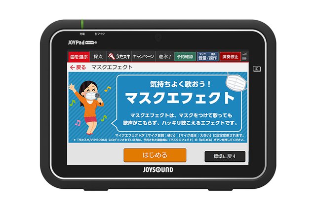 マスクエフェクト機能は、新型コロナウイルスの感染拡大防止の観点から、カラオケでマスクを着用して歌唱するシーンが増えていることを背景に開発されたもので、マスクをつけた状態でも自身の声がクリアに聞こえ、より気持ちよく歌唱することが可能だとしている。