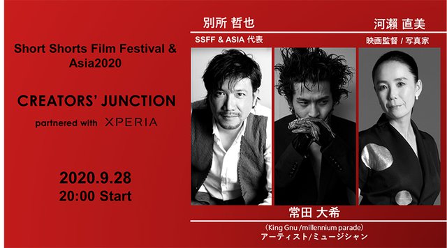 アジア最大級の国際短編映画祭「ショートショート フィルムフェスティバル&アジア(SSFF&ASIA)2020」にて、9月28日からトークイベント「Creators' Junction partnered with Xperia」がYouTube配信される。同イベントにKing Gnu millenium paradeの中心人物として活動するアーティスト/ミュージシャン・常田大希のゲスト出演が決定した。
