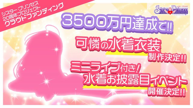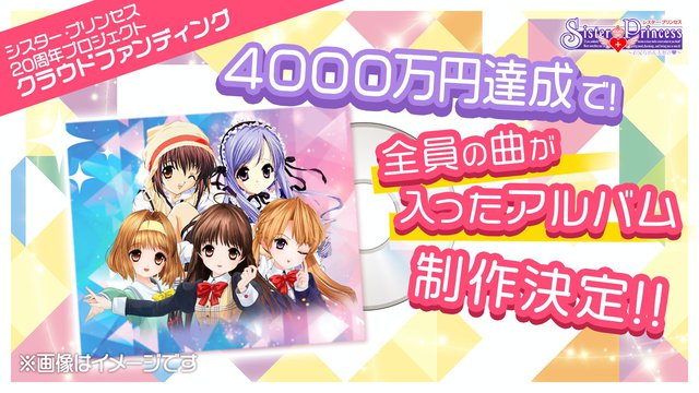 『シスター・プリンセス』20周年プロジェクトの一環として9月7日18時よりスタートしたクラウドファンディングが、開始からわずか6時間半で目標を達成した。