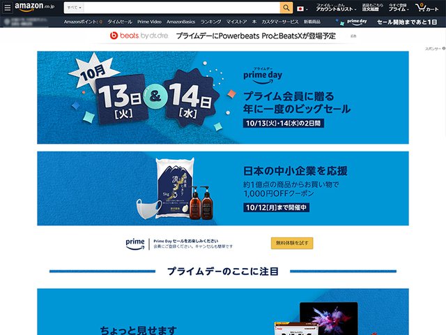 Amazonプライム会員を対象とした年に一度のセール「Amazonプライムデー」。明日10月13日からのスタートに先駆けて、Amazonギフト券の5,000円購入で最大1,000ポイントを還元するキャンペーンなどを展開している。