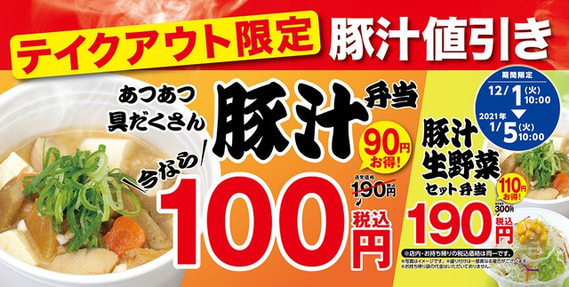 松屋、テイクアウト限定「豚汁100円フェア」1ヵ月開催。12月1日より