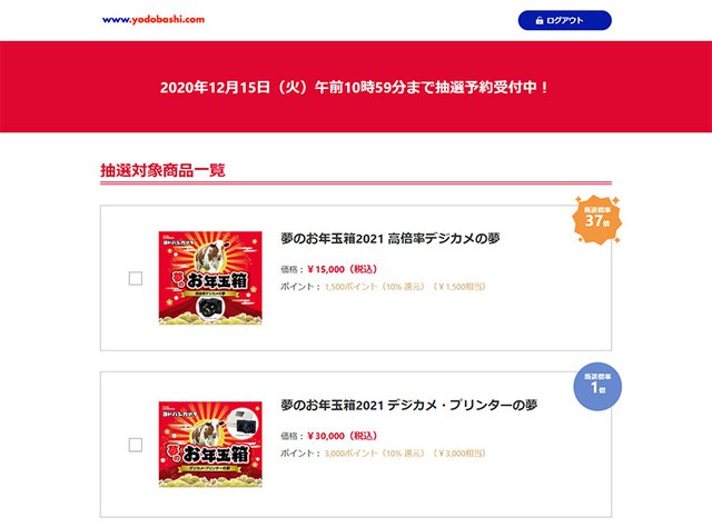 先日12月6日(日)までで受付を締め切った「2021年 夢のお年玉箱」の追加販売が決定した格好。申し込みにはヨドバシ・ドット・コムの会員登録が必要で、既存会員だけでなく、今回のために新規会員登録しても応募することができる。