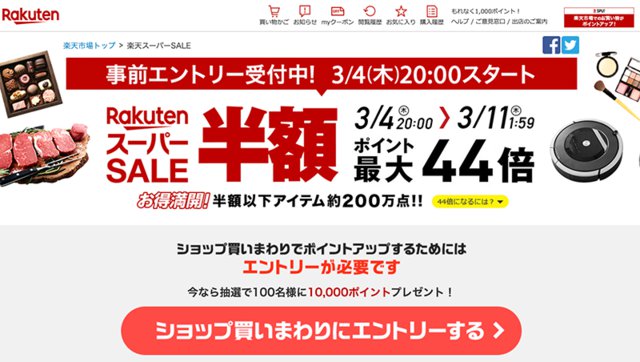 「楽天スーパーSALE」本日20時開始。お得な買い物方法や見逃し注意なクーポン情報を紹介