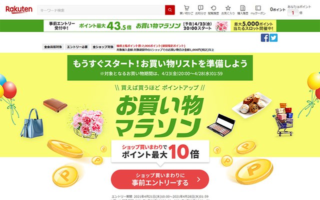 ポイント大幅アップ!「楽天お買い物マラソン」4/23 20時から。最大半額クーポンが事前配布中