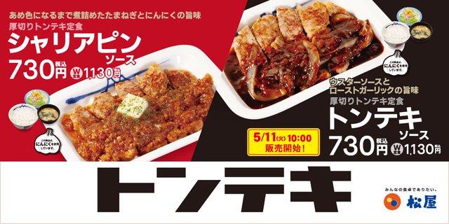 5月4日から販売している「厚切りトンテキ定食(シャリアピンソース)」の第二弾として新たなソースが加わった格好。トンテキソースは、「ウスターソースとローストガーリックの旨味がぎゅっと詰まったソース」に仕上げているという。